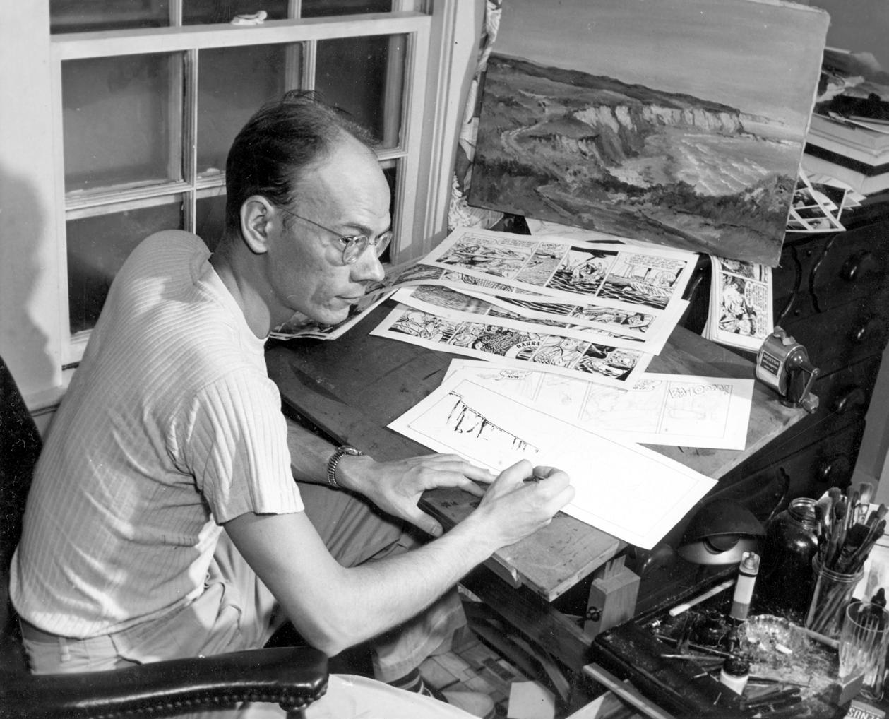 Above: Frank Borth poses for a publicity photo in his Montauk, New York, studio, around 1948, when he was drawing the syndicated newspaper comic strip, Ken Stuart.