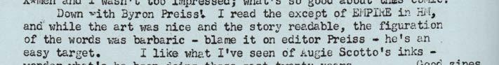This page: Above is Empire cover with art by Howard Chaykin. a remarkably controversial graphic novel packaged by Byron in 1978; snippet of Ron Harris comment in CAPA-alpha #170 [Dec. 1978]; and the cover of Dragonworld, the well-received fantasy novel by Byron and J. Michael Reaves, with copious illustration by the talented Joseph Zucker and outstanding production overall. The books was released as a hardcover, trade paperback, and mass-market edition in 1979. The epic, obviously influenced by the success of The Lord of the Rings, was adapted into a video game by Byron Preiss Video Productions in 1984.