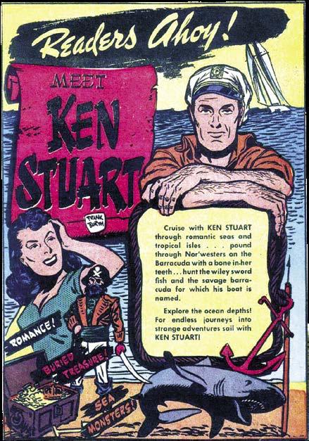 A promotional article trumpeting the arrival of Ken Stuart boastfully described the strip’s titular skipper: “his love for the sea supersedes all other loves. Handsome, virile, he is the target for many young ladies’ wiles, which he manages to elude.” And about the storylines: “The adventures come with his clientele, who get him into all sorts of jams.”