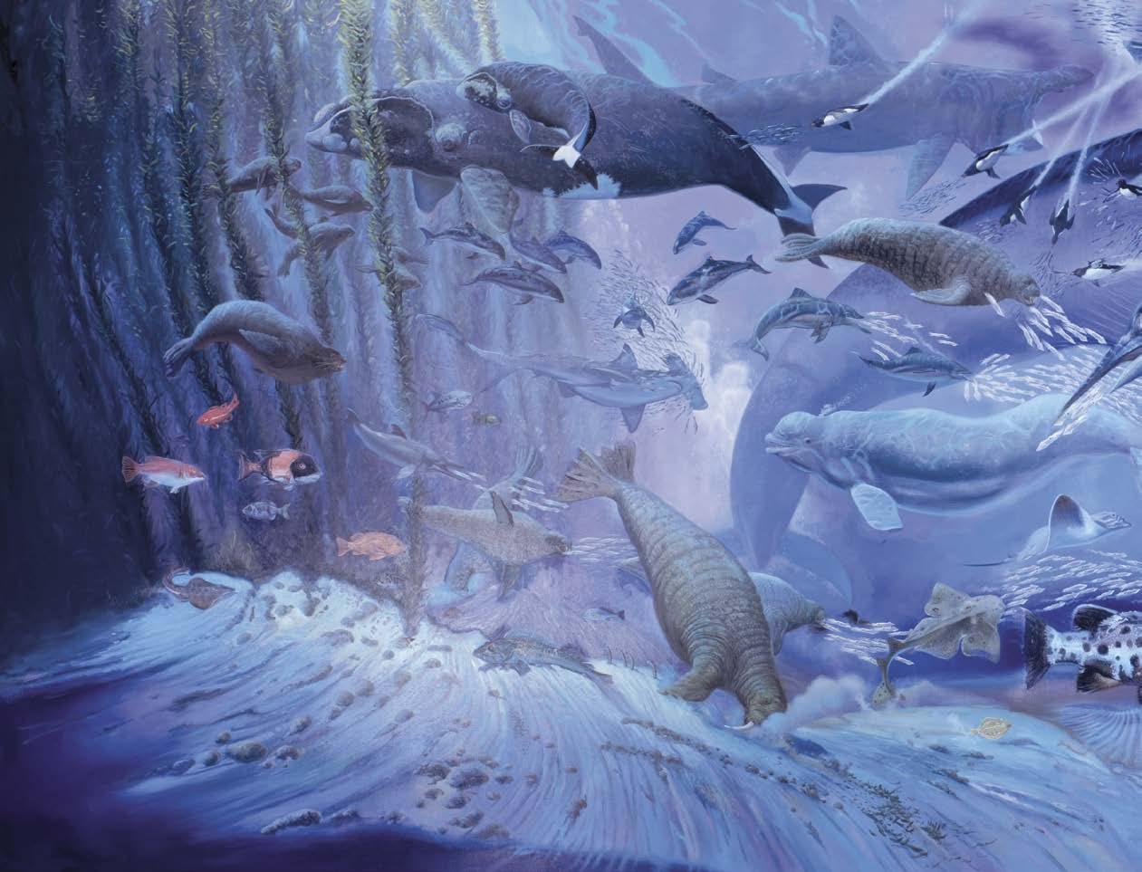This spread: The Secret was another heavily-promoted BPVP production. On previous page bottom, Sandi [left] and daughters, Blaire [center] and Karah [right] appeared on Expedition Unknown episode about the book. Above is Sergio Aragonés’ contribution to The Secret Life of Cats [1982]; and below is Bill Stout’s original art that appeared in BPVP’s Dinosaur Tales, featuring Ray Bradbury stories.