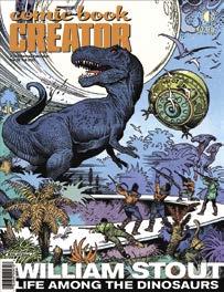 STOUT is interviewed about his illustration and comics work, as well as his association with DINOSAURS publisher BYRON PREISS, the visionary packager/publisher who is also celebrated in this double-header issue. Included is the only comprehensive interview ever conducted with PREISS, plus a huge biographical essay. Also MIKE DEODATO on his early years and