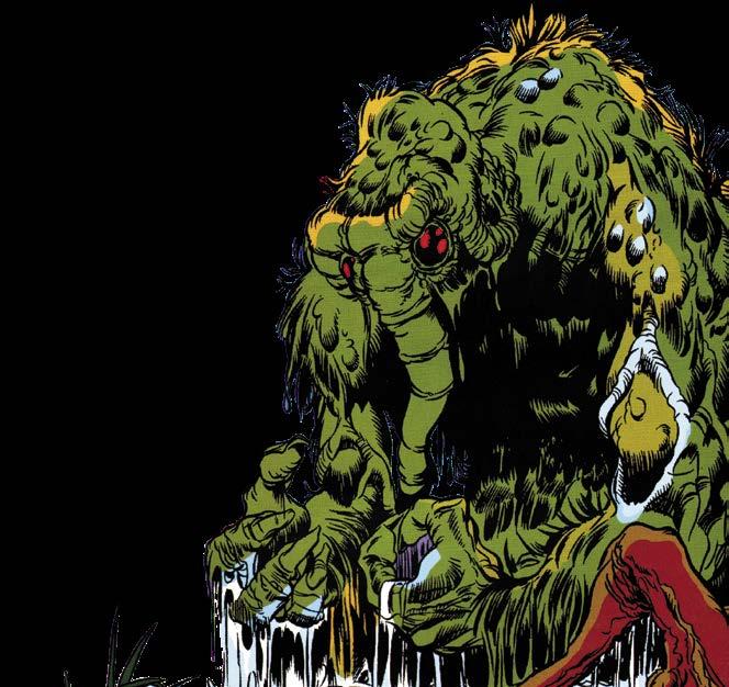 About any collaboration with the writer, Mayerik explained, “Steve pretty much presented a script. I can recall times of Steve being more collaborative, like on [two issues, 1984–85]. But at this particular time, I wasn’t… I didn’t have any particular feelings where I wanted the character to go, I just liked the visuals of the characters and was perfectly willing to draw what Steve had written… I can’t remember all the stories we did now. I think I suggested to Steve we do something about him running into a bunch of people who lived in the middle of the swamp, who were isolated from the rest of civilization. I can recall making that suggestion, I don’t know that we ever did a story with characters like that, I’m not sure. Other than that, I just went along with what Steve [wanted]… I always thought Steve had entertaining ideas.”