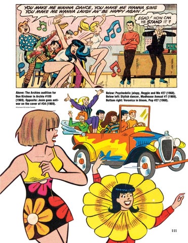 Above: The Archies audition for Don Kirshner in Archie #189 (1969). Opposite: Josie goes antiwar on the cover of #34 (1969).