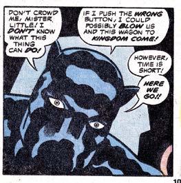 Ihave a very short question for Jack. (Sometimes it seems like when I write I’m always criticizing elements of Kirby’s work. But can I say I do that because usually his work is genius! How his creativity is drawn into even minor places is staggering—and appreciated all the more since I now draw a couple of strips myself and am totally intimidated by Kirby’s thinking when he draws creatively, even the most pedestrian part of a story. But when he does something that seems to me to be not up to his normal standard, it can really stand out. And since this issue is about questions, I thought I’d ask one of mine.)
