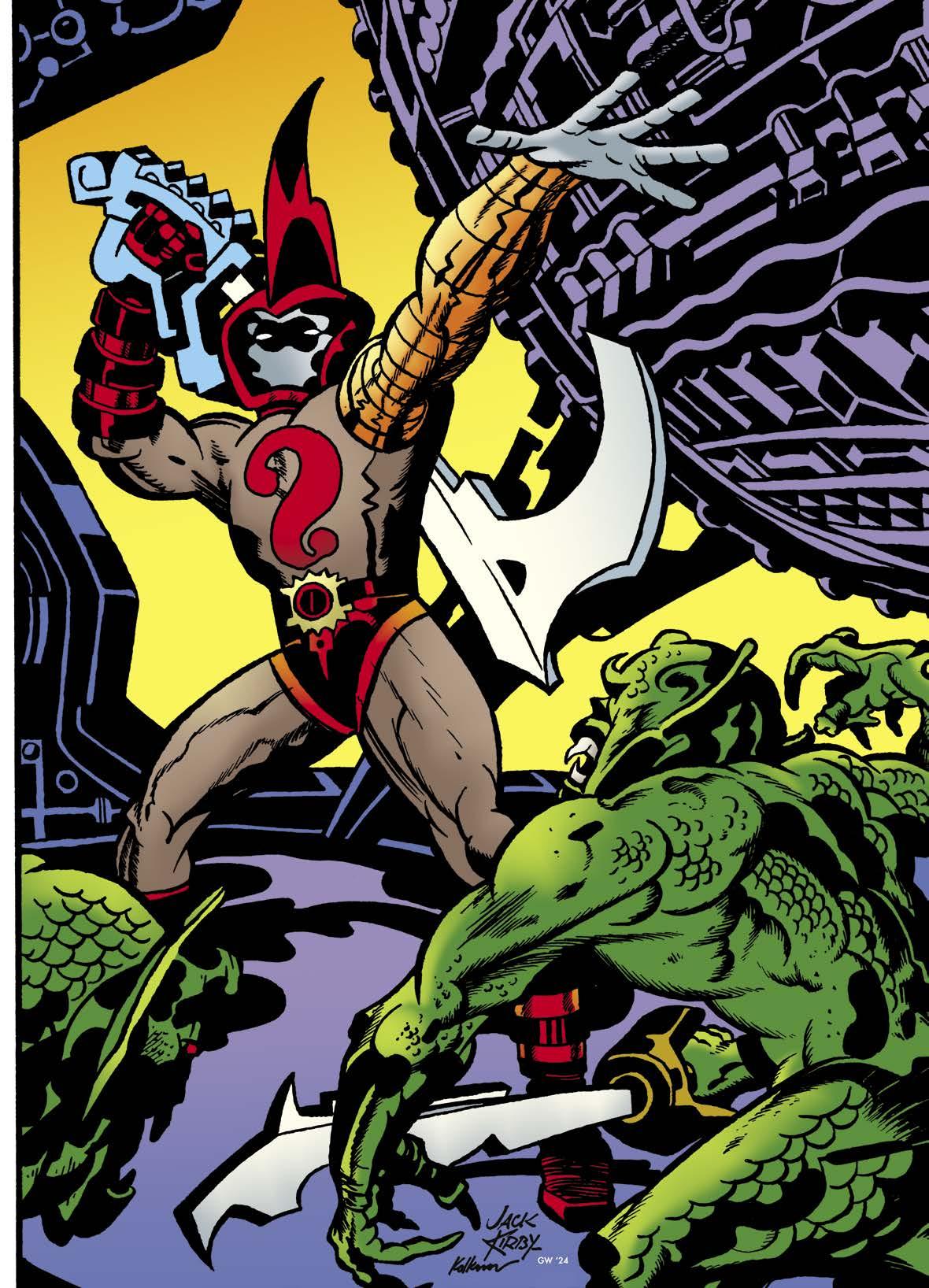 green with a couple of highlights in pinks and oranges. In many ways, they are precisely what you’d expect if you asked Jack in 1972 to draw two generic superheroes.