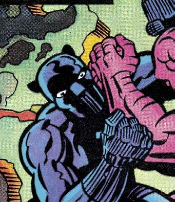 Dare I say it? Your way of drawing the Panther got even worse as your ’70s stint went on, where the tendency to draw ears that stick out like a teddy bear, and that horrible square nose—as well as way too many lines rather than the simplicity of the solid black you used to draw—reached a crescendo. Black Panther #12, page 1 wasn’t too bad (despite the nose), but the cover and other panels were... ugh! Am I the only one who finds the way the Panther was drawn in Jack’s ’70s series baffling and (I’ll admit) annoying?