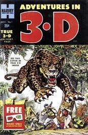 (below) Challengers of the Unknown #5 (Jan. 1959), and Howard Nostrand’s cover for 1953’s Adventures In 3-D #1