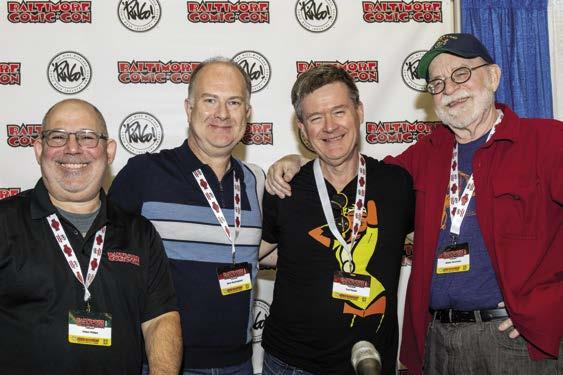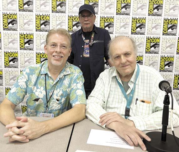 And while I’m a huge fan of both the Fantastic Four and Jack Kirby’s work, I’m hardly an expert. So I called in two friends who are experts to join me on the panel, hence the name “Our Favorite Fantastic Four Covers by Jack Kirby.” That’s John Morrow seated on the left, editor/publisher of the Jack Kirby Collector magazine, just one of the many great comic history mags and books from his company TwoMorrows Publishing. And seated next to him is Mark Evanier, Comic-Con’s panel-master, joining me for one of his 19 panel appearances at this year’s event. Evanier is the expert on Kirby; he was his assistant in the early 1970s