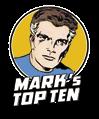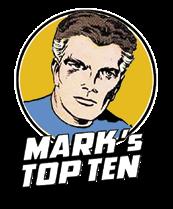 Issue #7 featured an outer space story, “The Master of Planet X.” Issue #8 introduced the Puppet Master and the Thing’s girlfriend, blind sculptress Alicia Masters. Issue #9 featured a shady movie deal with studio mogul Sub-Mariner. But we have Mark Evanier’s first Top Ten cover here…