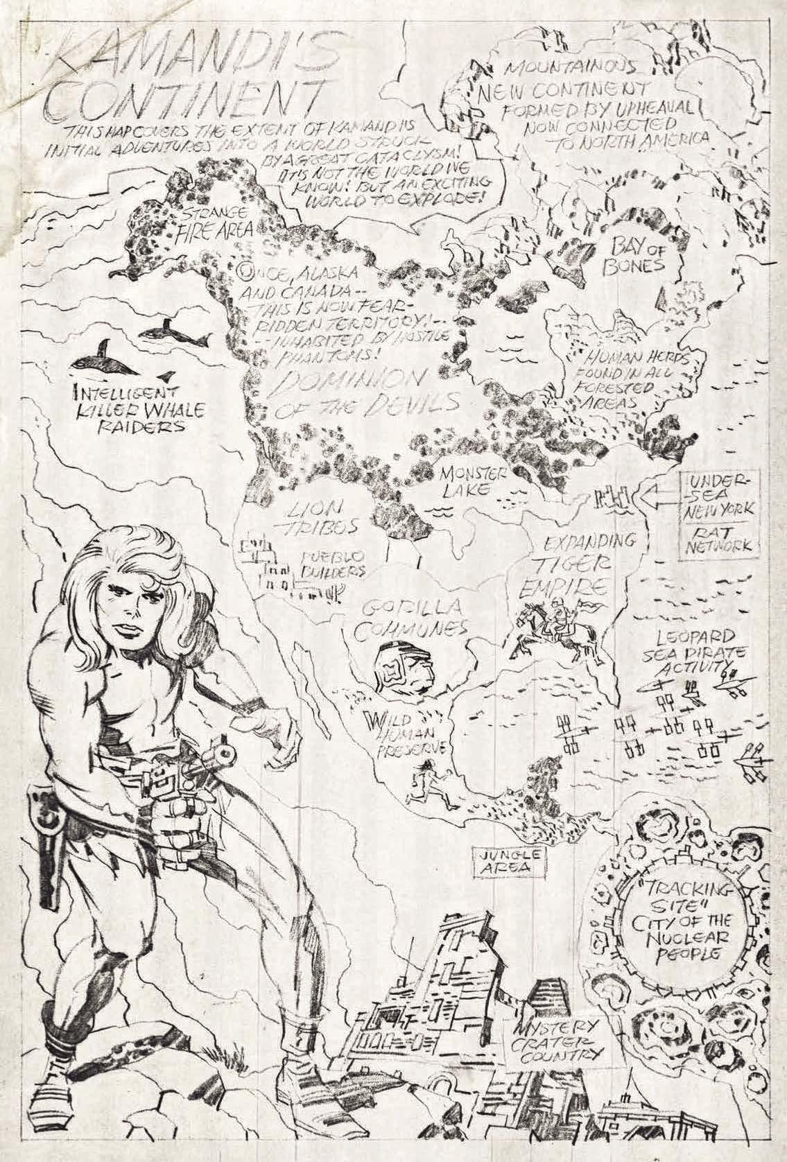 (below) Jack’s initial map from Kamandi #1 (Nov. 1972). Throughout this article, you’ll see the other maps Kirby delineated to pique readers’ curiosity.