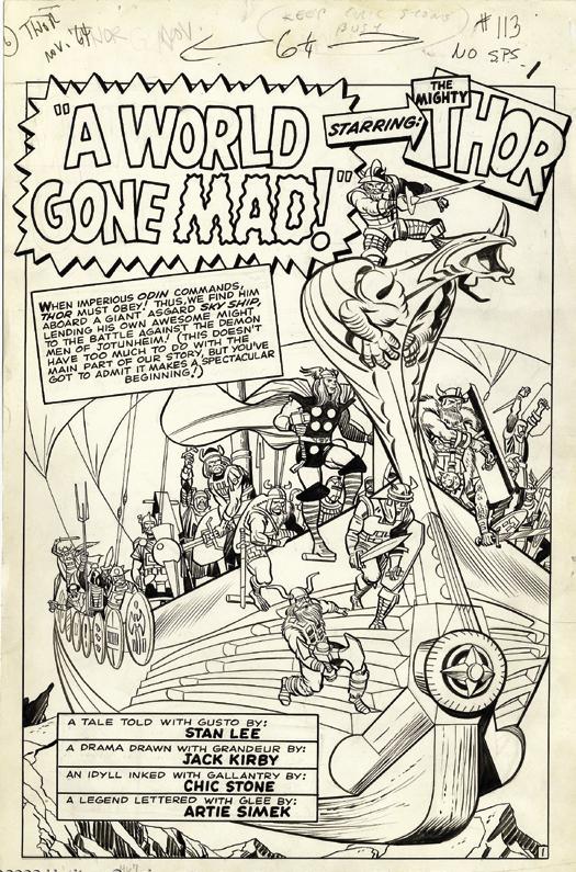 beat the guys in about a page-and-a-half or two-and-a-half pages, maybe. Then Thor goes back to Earth, and the story begins. But at the time I read that, Marvel was, by that time, putting credits in their comics, but I didn’t read that, or at least it didn’t register. And so my thought at the time was, “Wow, man, some kid named Jack Kirby wrote in and asked if they could maybe start off with this cool scene. And they said, ‘Alright, that’s great. We’ll do it.’ Man, these guys are awesome.” [laughter] And then God knows how many years later I was back rereading some of that stuff. I got to that and went, “Oh, ‘Jack Kirby’—thanks, Walt. Oh, no. Really?!” [laughter]