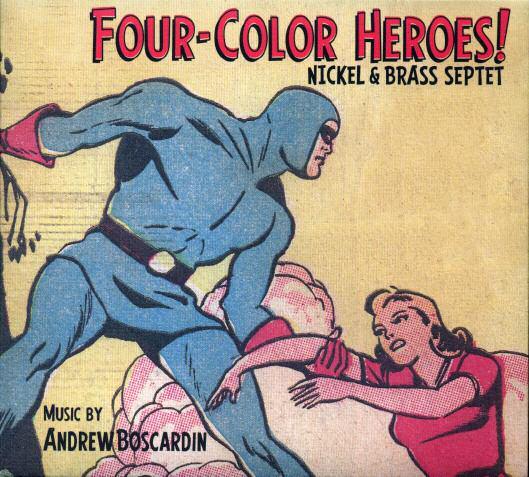 The Kirby references are literal on Four-Color Heroes!, the debut disk from the improvisational jazz ensemble Nickel & Brass Septet, led by Andrew Boscardin There’s “The Miracle of Thaddeus Brown,” “Grimm’s Waltz” and “The King of Yancy Street” for the first three tracks (with homages to many another supercreator from Siegel & Shuster to Steve Gerber filling out the rest), though these titles represent a kinship as much as a companion-piece Instrumental music will always by its nature be an abstract impression of its inspirations, though it’s satisfying to listen to these tunes in their own right and fun to complete the circuit of imagination with the Septet’s intent in ways which may be as varied as there are listeners and Kirby creations