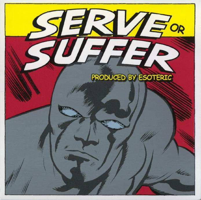 “Inspired by and dedicated to the genius of Jack Kirby,” New England rapper Esoteric’s fir all-instrumental disk Ser ve or Suffer neatly rearranges the ’60s Silver Surfer logo into an aphorism for Kirby’s cosmic morality play “Instrumental” doesn’t do it justice; these are dense yet lean grooves rich in sonic samples and pulp references, like a comic page with just the sound effects and pictures, telling its own essential stor y like Kirby could before you even looked at the words