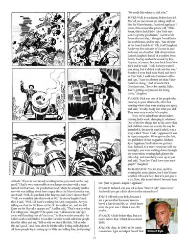 EVANIER: Richard, can you tell us how “Street Code” came to be? And could you get a little closer to the microphone? KYLE: I will with your help, because I am a person that has never remembered a date in my life, so I don’t know what the year was. I think it was ’82, maybe… EVANIER: A little before that, but not much before that. I think it was about 1980. KYLE: Oh, okay. In 1980, at the comic convention, I got an Inkpot Award that 74