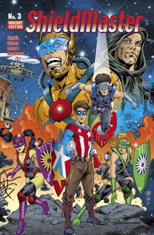 [top right] Variant cover for ShieldMaster #3. Keep up with all the latest on this character by following the ShieldMaster Facebook page, and the Instagram “ShieldMastercomics”.