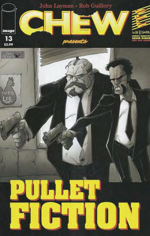 Layman is currently helming the widely successful Chew, a creator-owned comic published by Image and drawn by the amazing Rob Guillory. Chew tells the story of Tony Chu, a former Philadelphia cop who now works for the Food and Drug Administration. While this appears to be a mundane job at first glance, Chu works as a special agent for the FDA, gaining psychic impressions that help him solve cases by eating food and even people. Eating people is not foreign territory to Layman, as he wrote the intercompany crossover Marvel Zombies vs. The Army of Darkness. Showtime is currently developing a half-hour television series based on Chew.