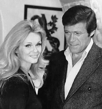 (RIGHT) Lynda Day George as part of the Mission: Impossible cast, on the January 22–28, 1972 cover of TV Guide. Mission: Impossible © Paramount Pictures Television. TV Guide © TV Guide. (INSET) What a handsome couple! Lynda Day George and Christopher George.