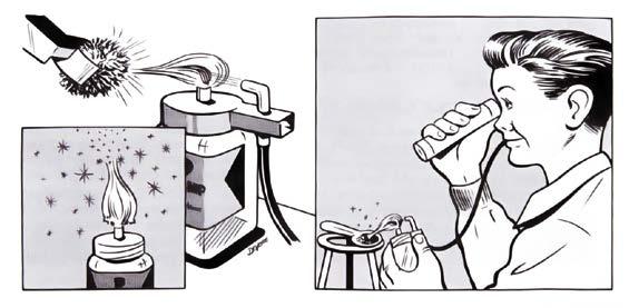 (ABOVE) Radioactive uranium ore and an asbestos heat shield, and (BELOW) an easy-to-make flame-thrower, you know, for kids.