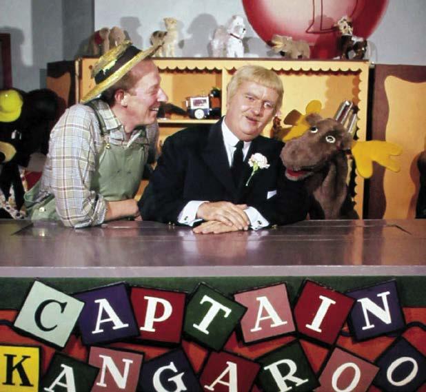 (ABOVE) Children’s television host Bob Keeshan originally donned make-up to become the grandfatherly Captain Kangaroo, but over the decades matured into the role. Captain Kangaroo ’s colorful cast, including Mr. Green Jeans, Dancing Bear, Mr. Moose, and Grandfather Clock, became as beloved as the Captain himself. © Creative Artists Agency. Photos courtesy of the Captain Kangaroo Facebook page.