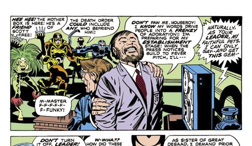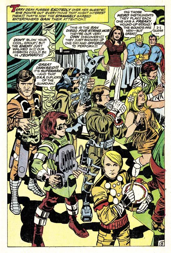 (LEFT) If you thought the Giant Turtle Olsen was the weirdest thing you’d seen in a Jimmy Olsen comic book… behold, Don Rickles—and Goody Rickels! Superman’s Pal, Jimmy Olsen #139 (July 1971). (ABOVE) From Mister Miracle #6 (Jan.–Feb. 1972), the self-aggrandizing Funky Flashman and sycophantic Houseroy. (BELOW) Can you identify the members of the San Diego Five String Mob from this page from Jimmy Olsen #144? TM & © DC Comics. Scan courtesy of Scott Shaw!