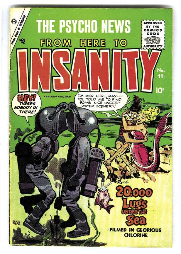 (ABOVE) You may know Jack Kirby for his work on Captain America, Fantastic Four, The Mighty Thor, and so many other super-hero series, but the King of Comics was no stranger to humor and other oddball work, such as cartooning for Charlton’s MAD knock-off From Here to Insanity #11 (Aug. 1955). Courtesy of Heritage.