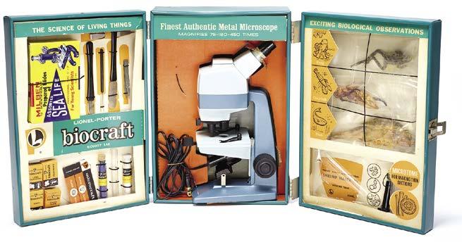 (LEFT) Porter Chemcraft got into the Atomic Energy game also in the Fifties. (RIGHT) The Lionel Corporation, best known for its trains, teamed with Porter to produce this biocraft Biology Lab (1961) about the “science of living things.” It comes with dead things and sharp objects. Courtesy of the Science History Institute.