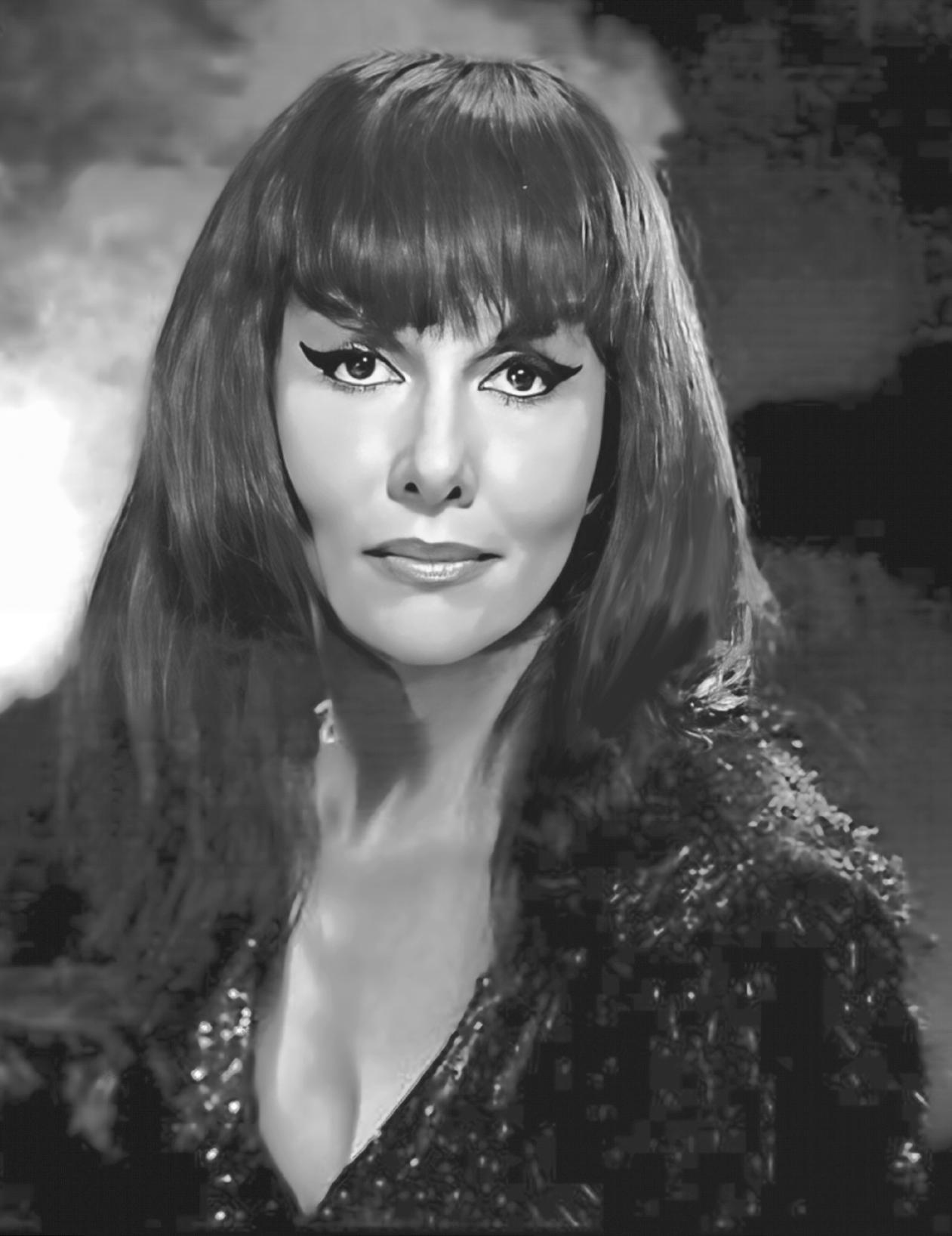 The first TV horror host was actually a horror host ess, Los Angeles’ Vampira, portrayed by Maila Elizabeth Syrjäniemi, a.k.a. Maila Nurmi. Vampira hosted The Vampira Show (KABC-TV, 1954–1955), in which she introduced scary, suspenseful movies and appeared in commercial breaks. She also was seen in the films The Beat Generation and Ed Wood’s Plan 9 from Outer Space. Her make-up and costume were closely based on cartoonist Charles Addams’ gaunt beauty Morticia, a decade before the 1964 debut of ABC’s The Addams Family