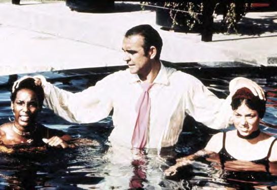 different combinations of moves and actions, and Broccoli and Hamilton picked what they liked for the scene. The company then took the better part of two days to block all the movement and camera coverage and shoot the bulk of the scene before breaking for the weekend, to return Monday for the final day of shooting in the swimming pool. “Lola did all of her own stunts because she was a gymnast, my stunt lady had to do the dive into the pool because I was SAG (Screen Actors Guild, the actors union) and Lola wasn’t at the time, so she was performing ‘Taft-Hartley’ (a SAG permit that producers file for non-union performers with special skills) and she was just wonderful. Richard E. Butler was Sir Sean’s stunt