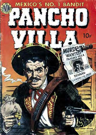 (RIGHT) Pancho Villa in popular culture: Publisher Avon’s Pancho Villa one-shot comic book (Nov. 1950), with cover art by painter of presidents Everett Raymond Kinstler; and the poster for the Wallace Beery picture Viva Villa! (1934), the second time the actor portrayed the bandit, having previously done so in the silent film Patria (1917). Viva Villa! © MGM. Courtesy of Wikimedia.