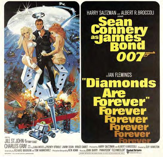 Diamonds Are Forever (1971) marked a return to form and the end of an era for the James Bond franchise; after producers refused to meet leading man Sean Connery’s salary demands following You Only Live Twice, he was replaced by Australian model George Lazenby for 1969’s On Her Majesty’s Secret Service. While the 1969 film is one of the best in the series, audiences just didn’t take to the new guy onscreen. When Lazenby went rogue and announced he wouldn’t return to the part of the world’s most famous secret agent, producers Cubby Broccoli and Harry Saltzman found themselves over a barrel; they needed a Bond, and quickly—a Bond who could right the franchise’s sinking prospects as the Sixties spy craze waned and drew its final breaths. The duo lured a visibly aging Connery back for one last hurrah as MI6 agent 007, and sent him stateside to get to the bottom of a diamond smuggling ring that smacked of old nemeses SPECTRE [Special Executive for Counter-Intelligence, Terrorism, Revenge and Extortion; herewith Spectre —ed.]. Along the way, Bond gets pulled into their bid to use the assets and influence of reclusive billionaire Willard Whyte to hold the world hostage with a killer laser weapon satellite made with the diamonds.