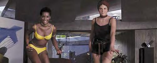 Kidnapped by Spectre commander Ernst Stavro Blofeld (who has been impersonating him), Whyte has been imprisoned in a fabulous modern home in the Nevada desert, watched over by a pair of lovely but deadly jailers, Bambi and Thumper. The pair are ultimately subdued after throwing Bond into the pool, but before that they savagely—and stylishly—beat him to within an inch of his life. Gymnast Lola Larson acquits herself well as Bambi, but the real standout in the scene is Thumper, as portrayed by dancer and actress Trina Parks, who became the first Bond girl of color in this movie.