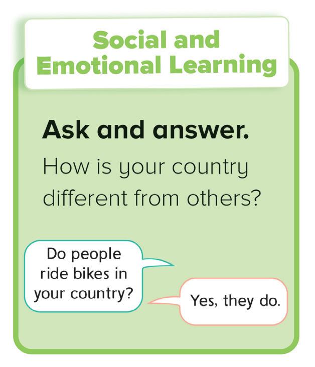 The special Social and Emotional Learning features in every unit gently start to focus our learners on five broad and important areas of development: self-awareness, self-management, social awareness, relationship skills, and responsible decision-making.
