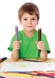 This is my classroom. My classroom is 1 There’s a 2 on the wall and a 3 The 4 isn’t big. There are 5 and 6 in the classroom. The desks are 7 , and the chairs are 8 . My teacher is 9 board big chairs black door blue bookcase purple desks green glue red bookshelf yellow paper orange scissors small