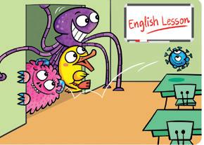 1 IN-READING. Check the instructions. Explain that students need to circle the classroom words in the text, not objects in the picture. Ask which of the words were not included in the list of objects from the Warm-Up. Check the list of words on the board with students and add new words from the text.