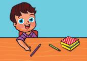 Books closed. Draw a picture of a pen on the board. Write I use a pen to _____. Ask, What do you use a pen for? and point to the blank. Do you use a pen to eat? (No) Do you use a pen to listen to music? (No) What do you use a pen for? If students do not respond with write, ask, Do I use a pen to write? (Yes) Fill in the blank with write Read the sentence and ask them to repeat it. Draw a ruler. Write, I use a ruler to _____. Elicit draw lines. Repeat with colored pencils (draw pictures), paper (write on), an eraser (erase mistakes), backpack (carry books). Elicit more ideas. Students may use objects from outside the classroom (cup (drink), glasses (see), a phone (make calls), etc). Make sure they use the infinitive structure but encourage any ideas.