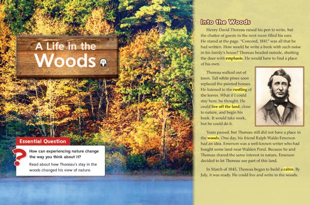 Thoreau walked out of town. Tall white pines soon replaced the painted houses. He listened to the rustling of the leaves. What if I could stay here, he thought. He could live off the land, close to nature, and begin his book. It would take work, but he could do it.