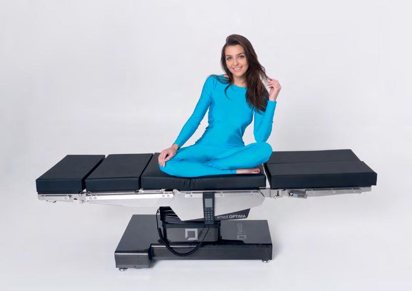Jako jedna z pierwszych firm na świecie wprowadziliśmy karbon do pro dukcji stołów operacyjnych. Włókno węglowe jest lekkie, odporne na ko rozję i środki chemiczne stosowane w dezynfekcji szpitalnej. Setki testów i prac prototypowych doprowadziły nas również do stworzenia najbez pieczniejszego na świecie stołu do obrazowania medycznego, którego blat pobił światowy rekord w ograniczeniu dawki promieniowania rent genowskiego przekazywanego pacjentowi.