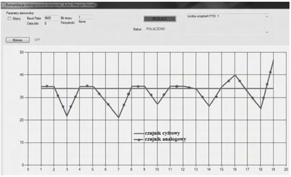 Rys. 11. Pomiar temperatury ciała dziecka za pomocą czujnika cyfrowego i analogowego