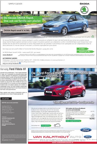 Gemiddeld brandstofverbruik en CO2-uitstoot: km/liter: 13,9-29,4; liter/100 km: 3,4-6,4; CO2 g/km: 88-169. Wij aanvaarden geen enkele aansprakelijkheid voor schade van welke aard dan ook ontstaan door niet, niet tijdig of onjuist plaatsen van advertenties en/of redactie. Fouten in telefonisch opgegeven advertenties en fouten ontstaan door onduidelijk schrift of zetfouten behoeven door de uitgever niet te worden gecompenseerd. Niets uit deze uitgave mag worden gekopieerd of overgenomen zonder schriftelijke toestemming vooraf van de uitgever.