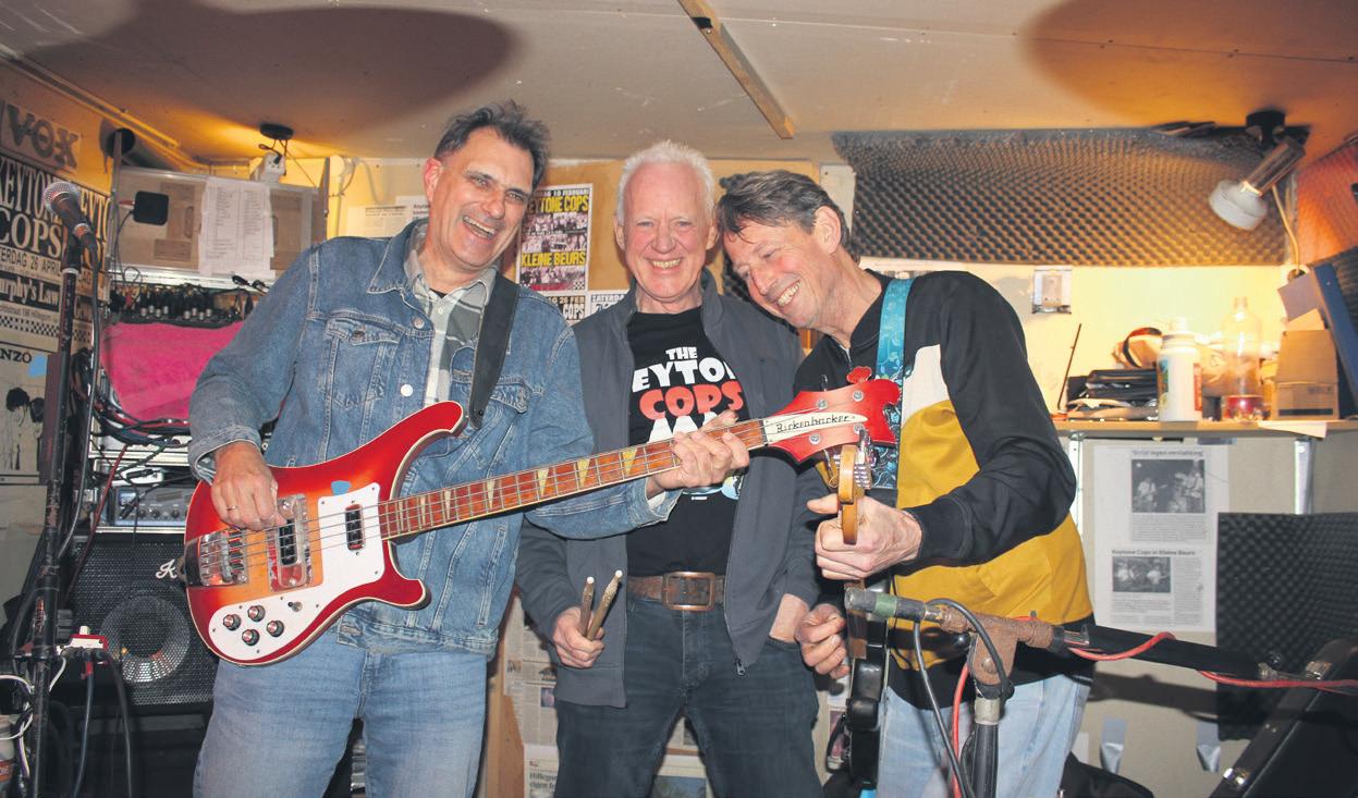 De Keytone Cops bestaan uit Pieter Strobbe drums/zang, Dolf Schinkel bas/zang en Wouter Roelofsen gitaar/zang. Het is een bijzonder jubileum, waarbij ze terug kunnen kijken op tal van optredens. Menig kroegje hebben ze plat gespeeld, op tal van festivals schitterden ze op het podium en al jaren starten ze het speelseizoen in februari met een optreden bij Café de Kleine Beurs. Op zaterdag 14 februari is dat ook weer het geval.