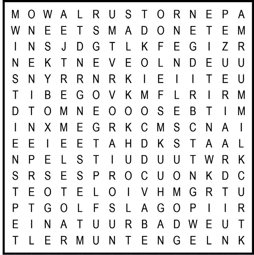 De woorden zitten horizontaal, verticaal en diagonaal in alle richtingen in de puzzel verstopt. Ze kunnen elkaar overlappen. Zoek ze op en streep ze af. De overblijvende letters vormen achter elkaar gelezen de oplossing.