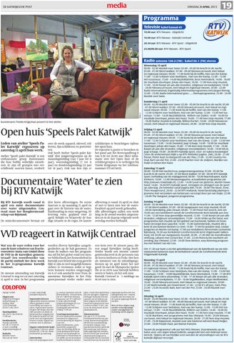 e-mail: redactie@ katwijkschepost.nl Ingezonden brieven: Ingezonden brieven worden alleen geplaatst onder vermelding van naam en adres. Ingezonden brieven mogen niet langer zijn dan 400 woorden en alleen digitaal worden aangeleverd. De redactie houdt zich het recht voor om ingezonden brieven zonder opgaaf van redenen niet te plaatsen. Opgave redactionele kopij tot vrijdag 11.00 uur; advertenties tot 11.00 uur. Advertentietarief op aanvraag. Advertenties: Voor een prijsopgave kunt