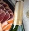 Luxe vistrio, oesters 4 stuks, zalmsashimi, gegrilde tonijn, huisgemaakte sushi, seafoodsalade.