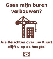 Berichten direct in uw mail ontvangen ‘Berichten over uw Buurt’ informeert u per e-mail over bekendmakingen van de overheid. U kunt zich hiervoor aanmelden. Dit kan via www.overheid.nl/berichten-over-uw-buurt Vul uw e-mailadres en postcode en huisnummer in en kies welk soort berichten u wilt ontvangen. Daarna ontvangt u deze berichten automatisch per e-mail.