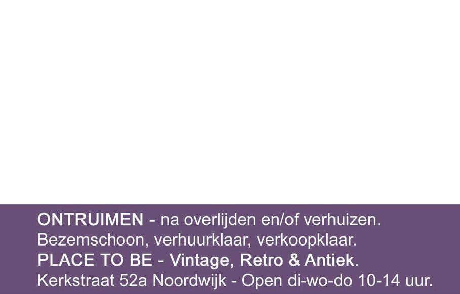 Contactgegevens Binnendienst Hennie Olthof 071 409 16 37 advertentie@uitgeverijverhagen.nl o.v.v. De Noordwijker / Noordwijkerhouts Weekblad Sluitingstijd advertenties maandag 10.00 uur.