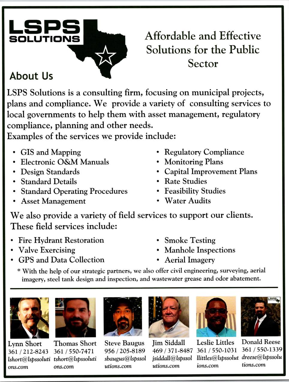 The Texas Water Utilities Association Journal is not responsible for facts and or opinions expressed by contributors or in advertisements herein. Editorials and comments do not necessarily represent the official policy of the Texas Water Utilities Association.