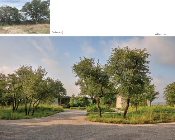 The revitalization of this historic ranch creates an active, verdant landscape integrates and showcases the site’s existing hydrologic systems. Situated at the convergence of a natural spring and creek, the landscape design was born out of the efficient direction and capture of water, reestablishing vital riparian habitat and reducing vehicular activity on property. Old ranch roads and footprints of former barns now give rise to native vegetation that cleanses rainwater, protecting waterways while immersing users in the natural beauty of Texas Hill Country ecology.