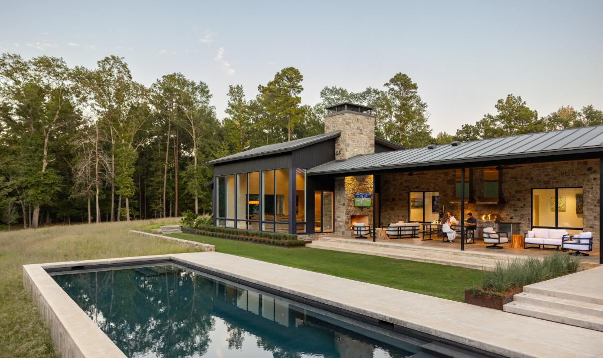 At Rose Branch, the landscape establishes the framework for living within the East Texas woods. The design prioritizes topography, views, connection to the native landscape, and seasonal changes to shape outdoor spaces that feel both purposeful and seamless with the architecture. Native grass meadows, locally sourced stone, and carefully scaled interventions create a strong relationship between architecture and land. Rather than competing with the surrounding environment, the landscape reinforces it, offering low-maintenance systems, meaningful outdoor rooms, and a refined material palette that supports daily use while preserving the site’s natural character.