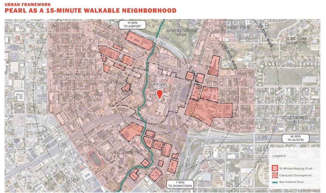 Over the past decade, Pearl has served as a living-breathing case study of successful mixed-use development both locally and globally. As Pearl plans for its future, strategies for expanding its footprint to further engage the San Antonio River, the Broadway corridor, and surrounding neighborhoods will extend Pearl’s reach and relevance with the intention of creating a more connected, walkable, socially inclusive, and economically diverse environment. The master plan serves as a north star for achieving the next phase of ambitions with innovative vertical mixed-use, missing middle housing, shared parking and multi-modal mobility.