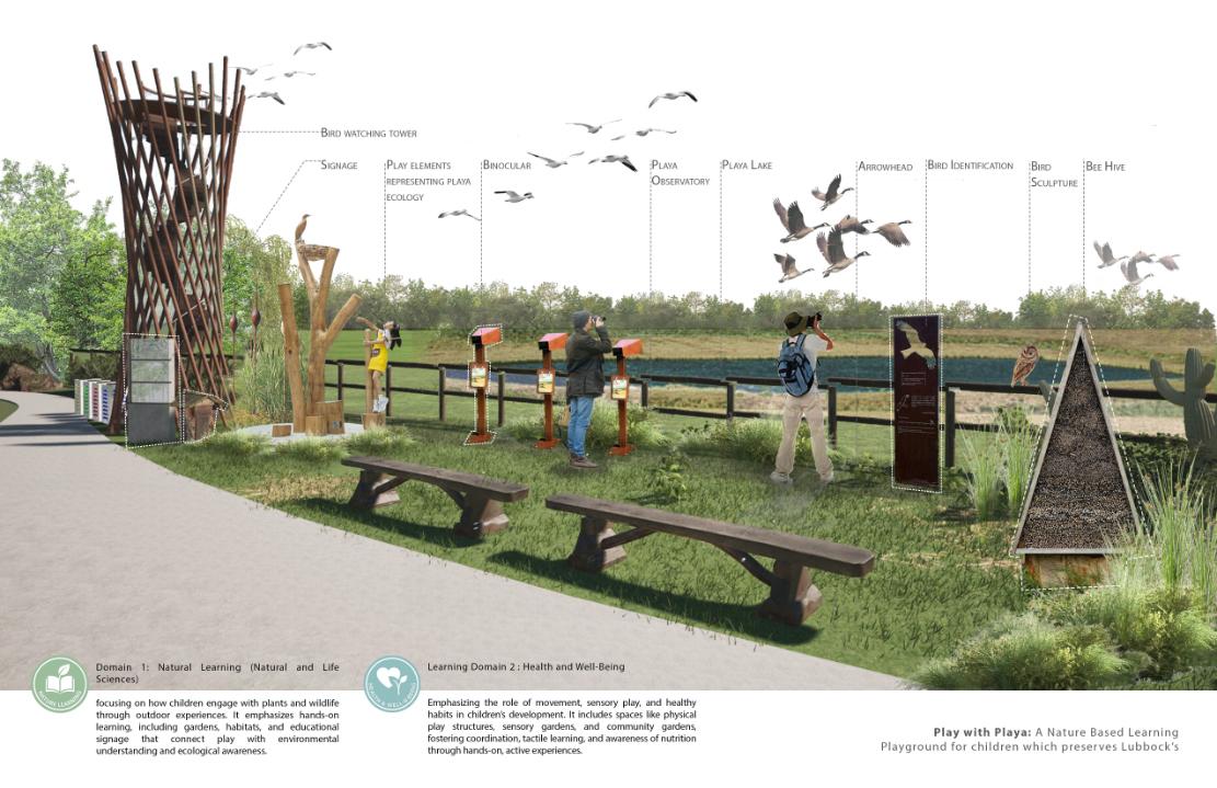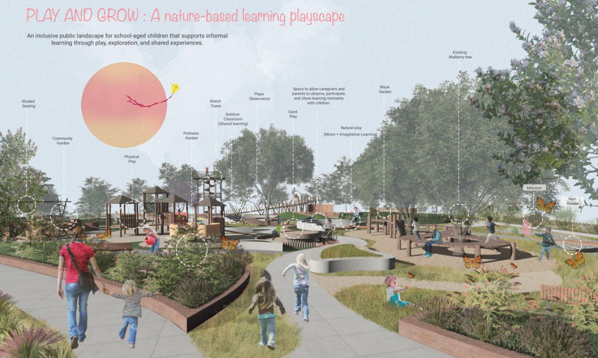 Play with Playa transforms an overlooked wetland into a living learning landscape where children explore ecology through play and participation. Rooted in community voices and research driven design, the project unites environmental restoration, climate education, and childhood development to demonstrate how playful landscapes can advance resilience, equity, and meaningful public engagement.